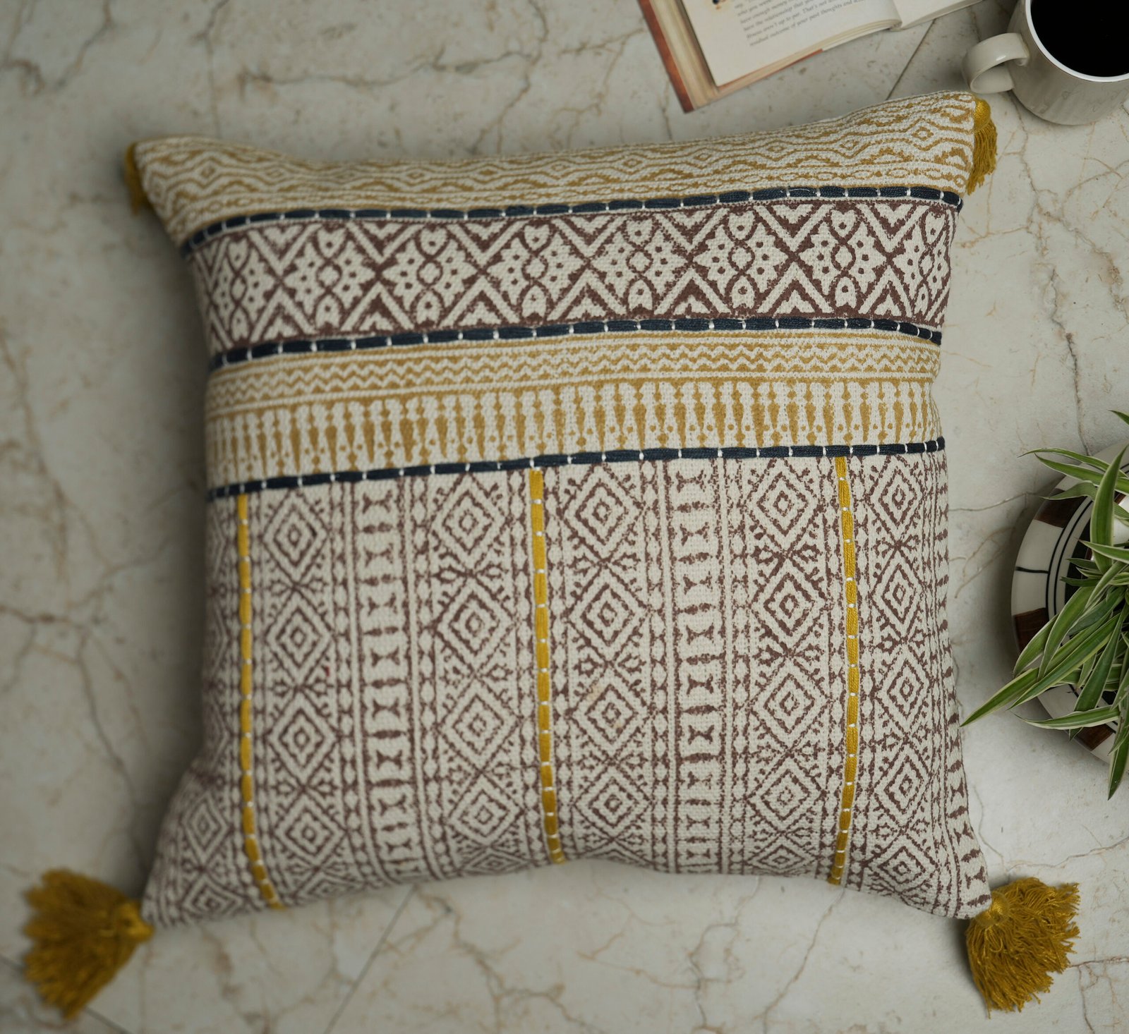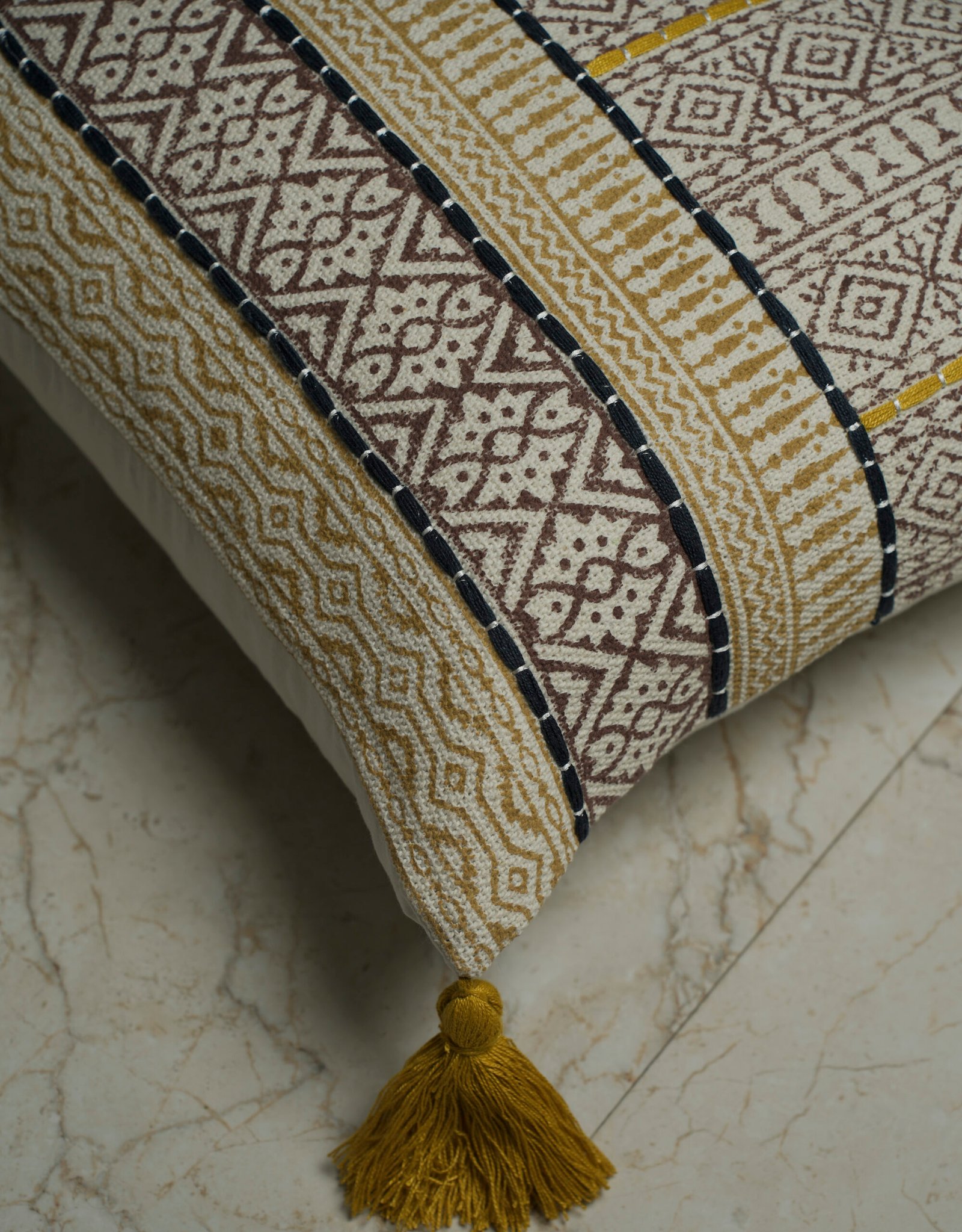 A modernized cushion cover, blending traditional techniques with perfect color blocking