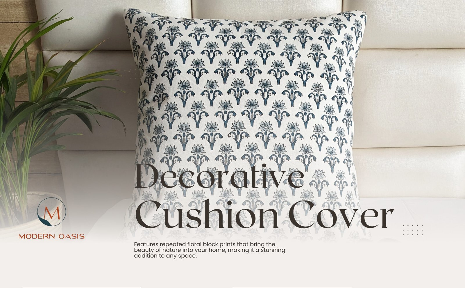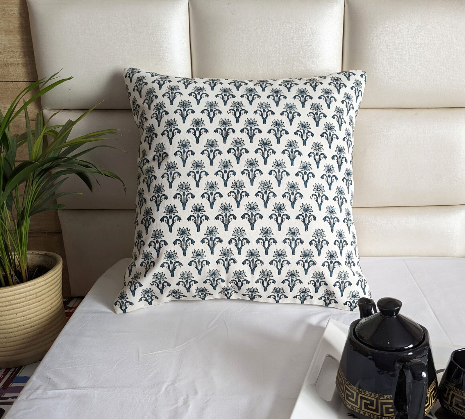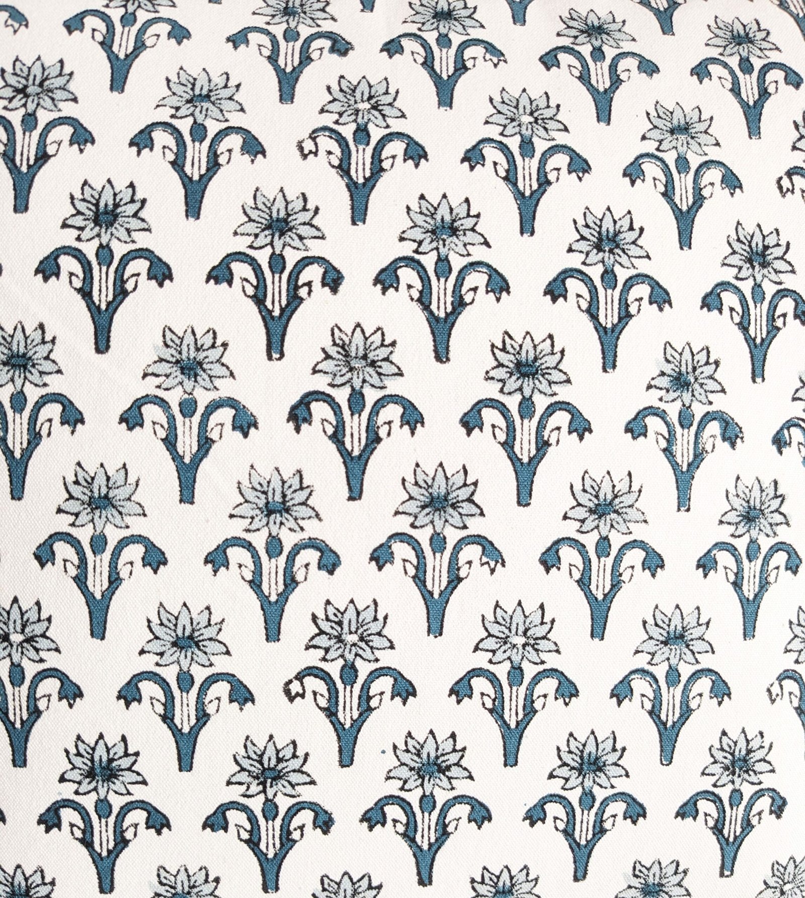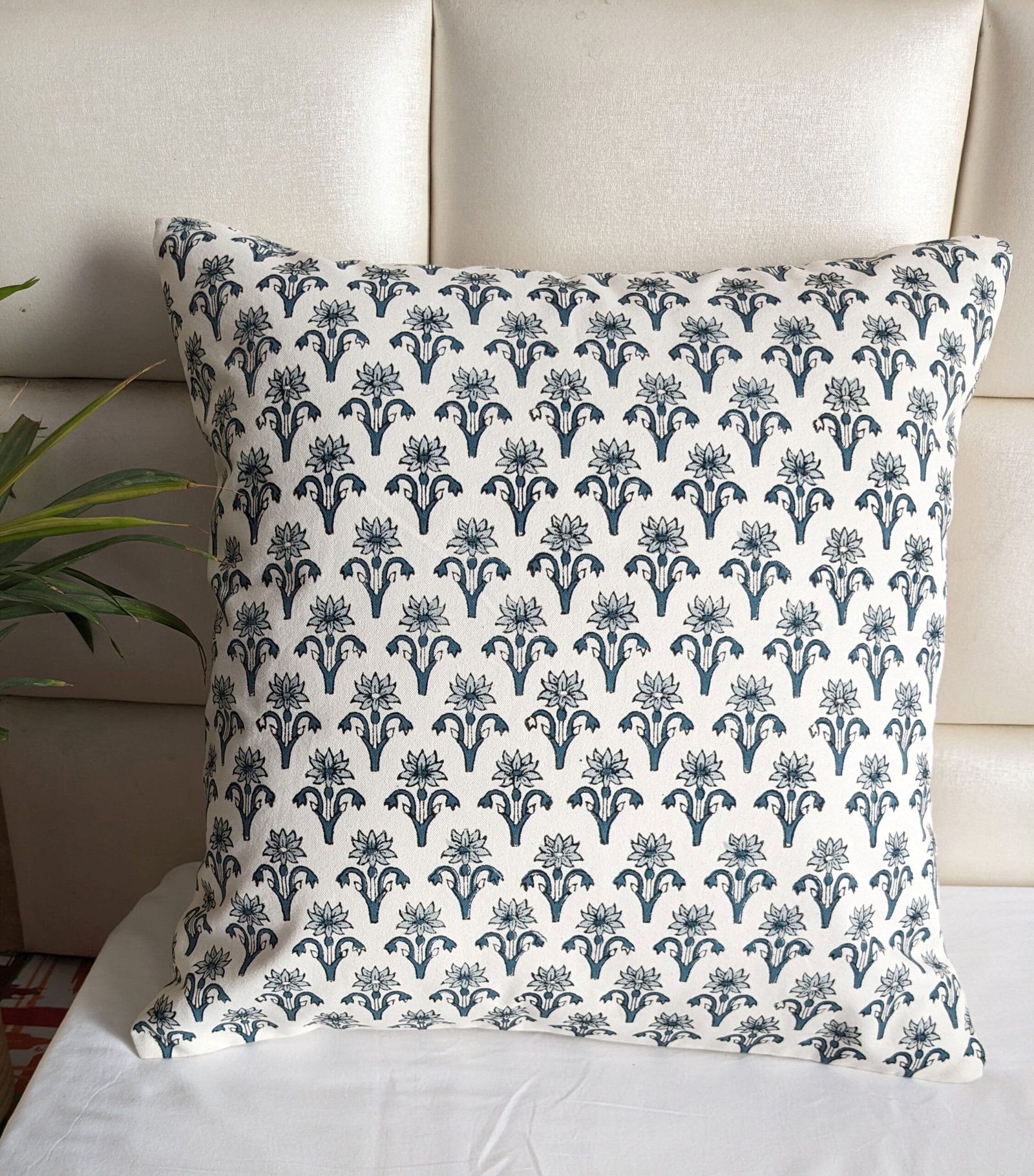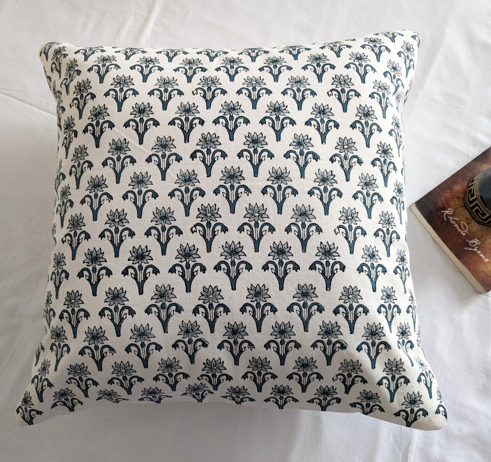 Repeated florals block printed cushion cover